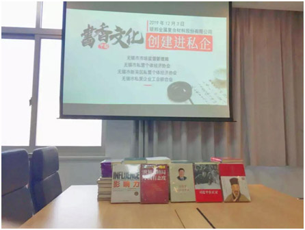 On December 3rd, 2019 "Scholarly culture" was organized by Wuxi Market Supervision Administration bureau, Wuxi Private Self-employed Economy Association, Wuxi Xinwu District Private Self-employed Economy Association and Wuxi Private Enterprise Trade Union Federation in yinbang Party Building Activity room.