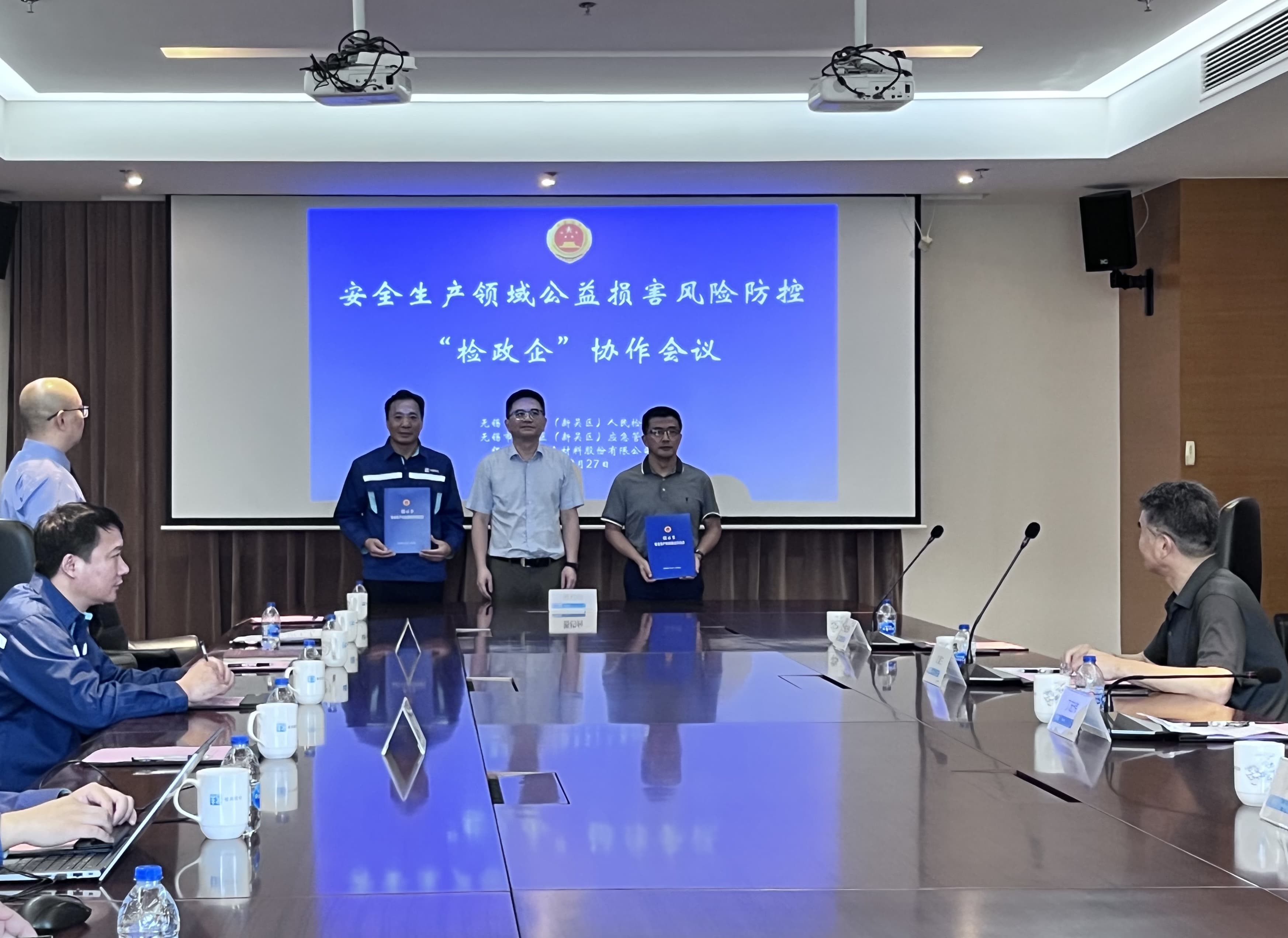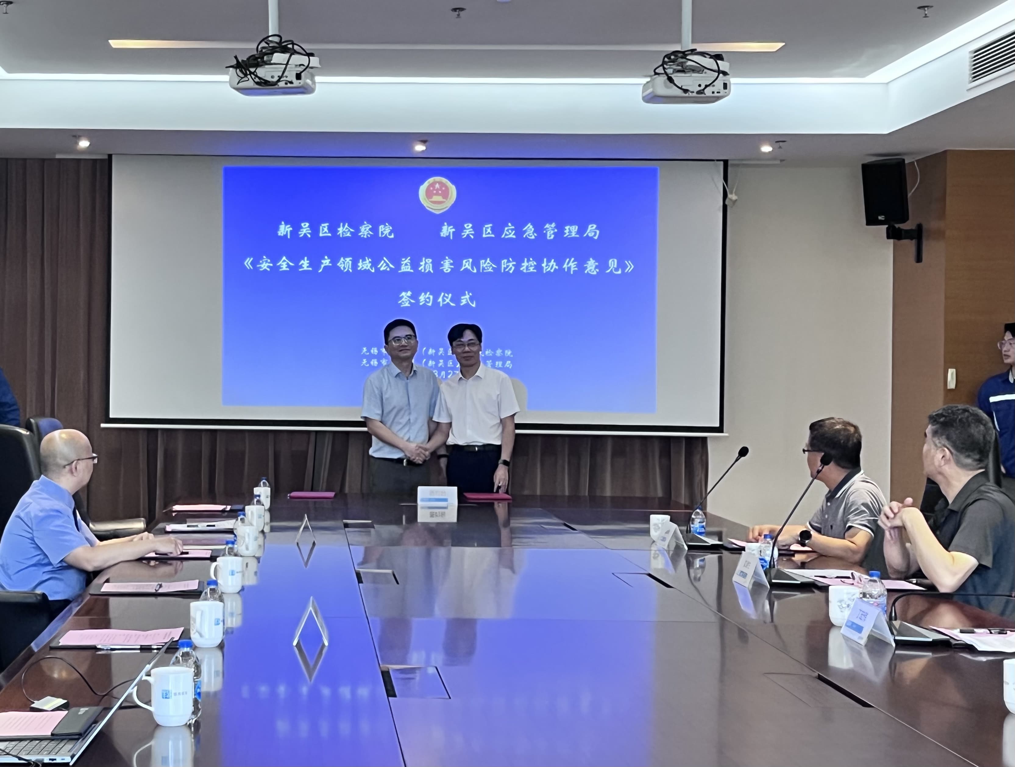 新吴区检察院与区应急管理局共同签订《安全生产领域公益损害风险防控协作意见》,建立安全生产领域公益损害风险防控工作方面协作配合机制。