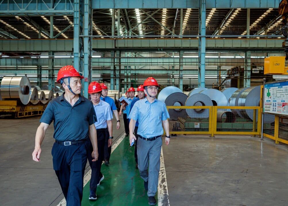 w体育平台董事长沈健生带领与会领导参观了银邦生产车间,了解生产流程、安全保障措施等情况。
